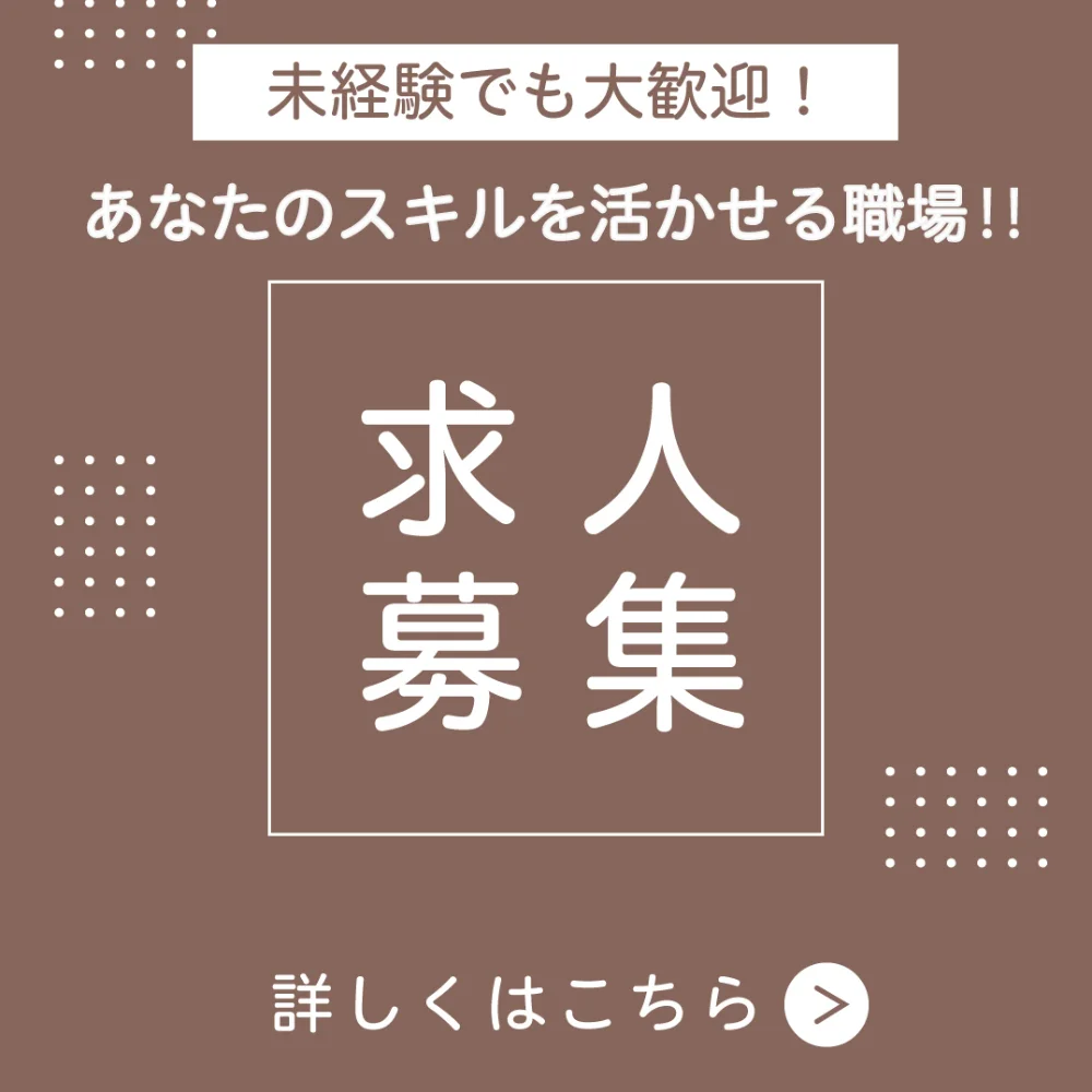 経験者・有資格者優遇。未経験者の採用実績も多数。適性があると認めれば積極的に採用します。ぜひチャレンジしてください。