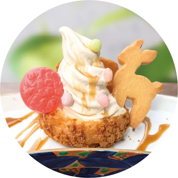 だんご・どら焼き・ソフトクリーム・各種ドリンクのほか、季節限定でかき氷もご用意しております。