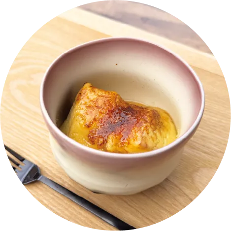 つや姫の米粉を使ったカスタードでコクがありつつ軽やかな味わい。キャラメルの香ばしさがアクセントです。