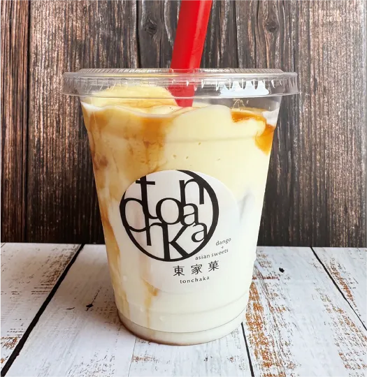 自家製のカスタードとホイップを混ぜ合わせた滑らかなクリームをミルクにとろり。
